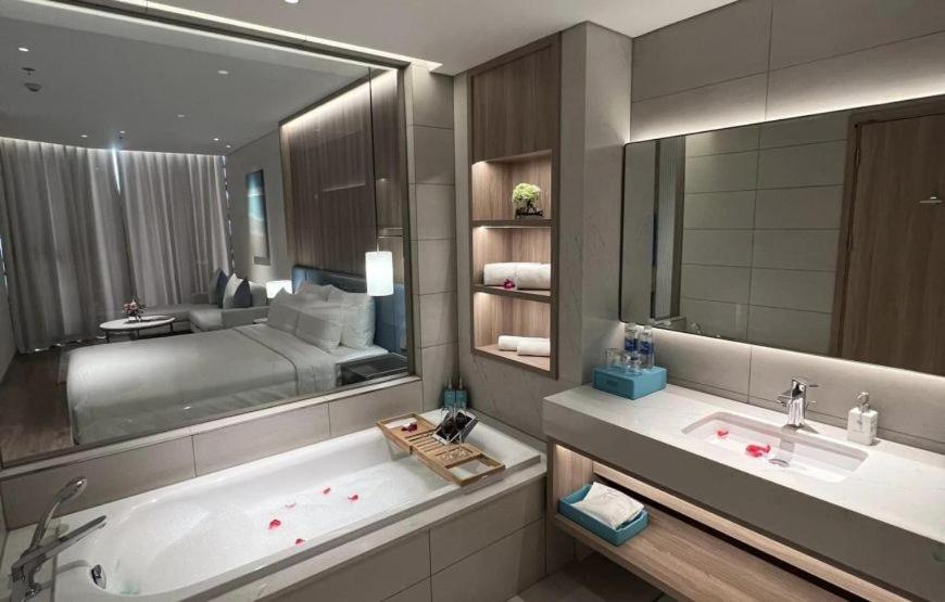 À La Carte Halong Bay, a property with a shared lounge, is situated in Ha Long, 2.2 km from Marina Bay Beach, 4.9 km from Ha Long Queen Cable Car, as well as 8.6 km from Tuan Chau Harbour. Guests can benefit from a balcony and a terrace. The aparthotel features parking on-site, a hot tub and a lift.